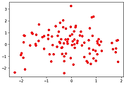random.rand 함수를 이용하여 0~1사이의 값을 가진 크기 (100,2)의 배열을 만듭니다.