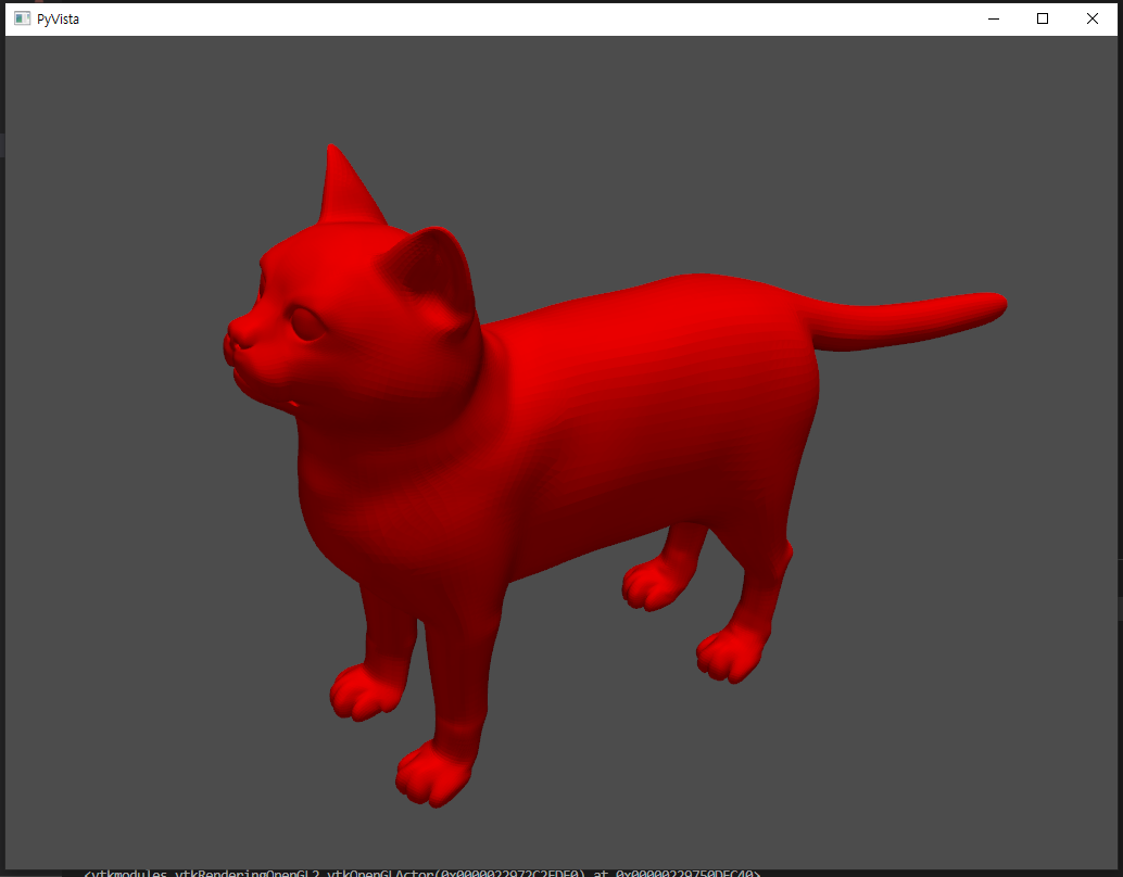 마지막으로 시각화를 해봅시다. cat.stl 을 시각화하는 방법은 아래와 같습니다.