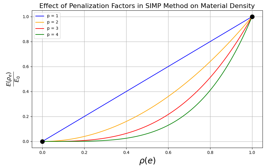 plt.title('Effect of Penalization Factors in SIMP Method on Material Density', fontsize=16)