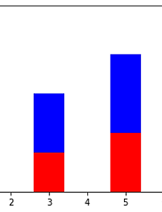 [파이썬 matplotlib] 적층형 막대그래프 적층형 막대그래프를 그리는 방법은 plt.bar 그래프를 2개 그릴 때, 두번째 그래프에 bottom 옵션을 설정해주는 것입니다. 밑에 깔릴 데이터를 선택해주면 됩니다. import matplotlib.pyplot as plt X=[1,3,5,7]data1 = [1,2,3,4]data2 = [2,3,4,5]plt.bar(X, data1,color='r')plt.bar(X, data2,color='b',bottom=data1) plt.show() 세칸 이상 쌓고 싶은 경우에는 넘파이 array를 사용하는게 편합니다. 이유는 data1+data2 와 같이 더해서 bottom에 넣어주어야 하는데, list일 경우 덧셈연산이 요소끼리의 합이 아니기 때문입니다. i..