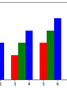 [파이썬 matplotlib] 그룹형 막대그래프 그룹형 막대그래프를 그리는 원리는, 한 그래프에 여러 막대그래프를 그리고 각 막대그래프가 서로 겹치지 않는 위치에 있도록 하는 것입니다. 따라서 각 그래프의 width와 그래프 사이 간격을 잘 고려해주어야 합니다. 그래프 width를 0.5로 놓겠습니다. 간격도 0.5씩 떨어지도록 해주면 됩니다. import matplotlib.pyplot as plt X1=[1,3,5,7]data1 = [1,2,3,4]plt.bar(X1, data1,color='r',width=0.5) X2=[1+0.5,3+0.5,5+0.5,7+0.5]data2 = [2,3,4,5]plt.bar(X2, data2,color='g',width=0.5) X3=[1+1,3+1,5+1,7+1]..