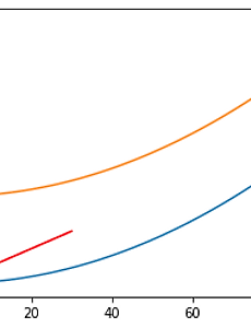 [파이썬 matplotlib] 그래프에 선(line) 추가하기 그래프에 그리드를 추가할 때는 add_line 함수를 사용합니다. 사용 방법은 아래와 같습니다. 좀 복잡합니다. plt.gca().add_line(plt.Line2D( (x좌표들),(y좌표들) ) 아래는 예시입니다. (10,1000) 과 (30,3000) 을 연결한 선입니다. import numpy as npimport matplotlib.pyplot as plt X = np.linspace(0, 100, 100)Y1 = X**2Y2 = X**2+5000 plt.plot(X,Y1)plt.plot(X,Y2) plt.gca().add_line(plt.Line2D((10,30),(1000,3000),color='r')) plt.show()